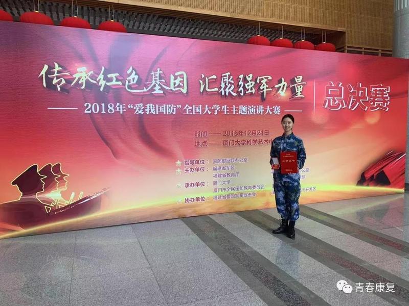张天璠,2018级听力与言语康复学专业,2018年“爱我国防”老员工主题演讲比赛上海市二等奖,全国比赛优胜奖。