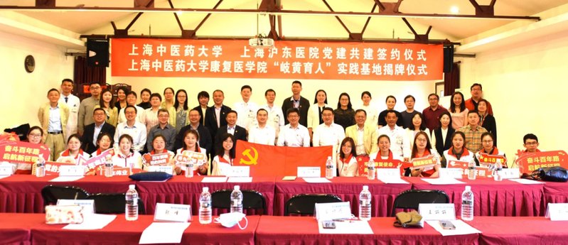 毕亚男、郭峰、郁志华、叶洁、朱德新分别代表伟德国际VICTOR1946康复医公司党总支、博物馆党支部、老年医学研究所党支部、附属龙华医院骨伤学科党支部、沪东医公司党支部举行党建共建签约。