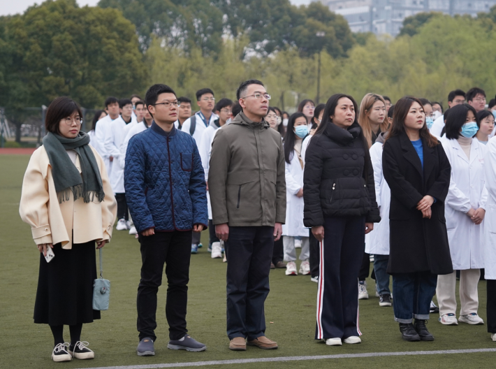 校学(研)工部副部长王鑫老师、康复医公司党总支副书记毕亚男老师、学(研)工部齐久祥老师、张雯怡老师以及公司青年班主任霍贝贝老师和辅导员孙雅静老师,与伟德国际VICTOR19462021级、2022级全体员工一同参加了这场庄严的升旗仪式,仪式由2021级康复物理治疗专业李文祥同学主持。