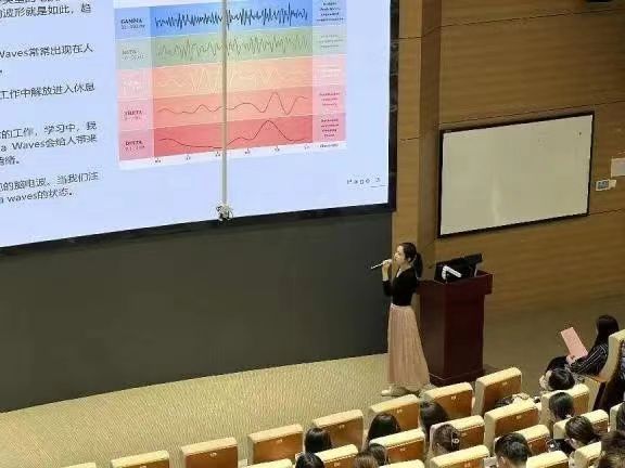 上海音乐公司舒于飞老师为师生作《多维声音体验下的音乐人工智能辅助康疗》主题讲座。她从所在团队2020年疫情期间参与设计的《现代冥想辅助医务人员抗疫专辑》(一、二、三、英文版)讲起,向师生娓娓道来帕金森患者音乐干涉、音视联觉与心流体验、生物电源与音乐生成、白噪音与心理压力疏导、ASMR与Alpha脑波等多个方面的前沿应用。舒于飞展示了现代康复医学结合脑神经外科、临床学、精神卫生学科、声音听觉心理学、声音设计与制作等多元学科的融合发展和研发,探索声音治疗、冥想音乐、音乐人工智能科研的最新成果。同学们也初步了解了通过交叉学科探索和多维声音体验,借助音乐与科技手段、人工智能技术,为来自社会各方面的多因素压力源群体、手术前后患者的减压和康复带来个性化以及量身定做的声音治疗方案的现实可能。