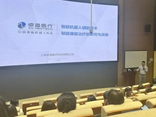 伟德国际VICTOR1946导师团院外导师、院级“岐黄育人实践基地”卓道医疗创始人、CEO王道雨为师生作《智能机器人辅助技术在康复治疗中的应用研究与进展》主题讲座。王道雨以自主研发的ArmGuider牵引式上肢康复训练机器人为例,阐述实现了机械臂全面力学交互并配备视听交互情景互动系统的康复机器人模拟再现康复治疗师引导患者进行训练的基本原理,并围绕拥有全球首款实现肩部复合体五自由度设计的机械动力外骨骼结构的Nimbot外骨骼上肢机器人、率先实现髋膝全自由度训练的创新医疗器械SmartSling下肢康复训练机器人,讲解了卓道医疗覆盖上、下肢康复领域完整的康复机器人矩阵。王道雨以直观形式呈现了康复医学工程领域的发展前沿,让同学们领会到康复机器人已经能够提供灵敏、精准的力控方案,构建实时任务导向型情景交互和强大的数据采集、分析、处理系统,这使得以有效治疗和易于管理为优势的康复机器人能够进一步配合乃至嵌入当前康复治疗体系。