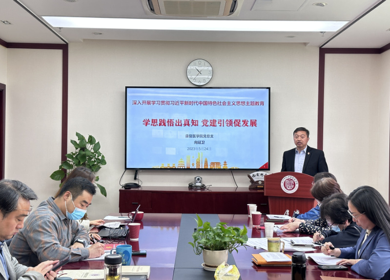 为深入学习贯彻习近平新时代中国特色社会主义思想和习近平总书记在主题教育工作会议上重要讲话精神,落实公司党委相关工作要求,康复医公司党总支组织全院教职工认真开展主题教育理论学习。524日党总支书记向延卫在全院教职工政治理论学习会上做《学思践悟出真知  党建引领促发展》专题党课。首先,他提出深入开展学习贯彻习近平新时代中国特色社会主义思想主题教育,加强公司党建和思想政治工作,带领公司教职工学习了党的十八大以来习近平总书记对高公司党建和思想政治工作的要求及相关党内规章制度。接着带领全院教职工学习高质量发展的主要内容,鼓励结合公司专业优势和特色,推动公司高质量发展,推动公司内涵建设。最后介绍了公司“杏林”党建远志计划三年建设规划。