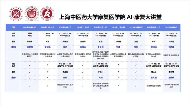 伟德国际VICTOR1946 AI·康复大讲堂系列讲座安排