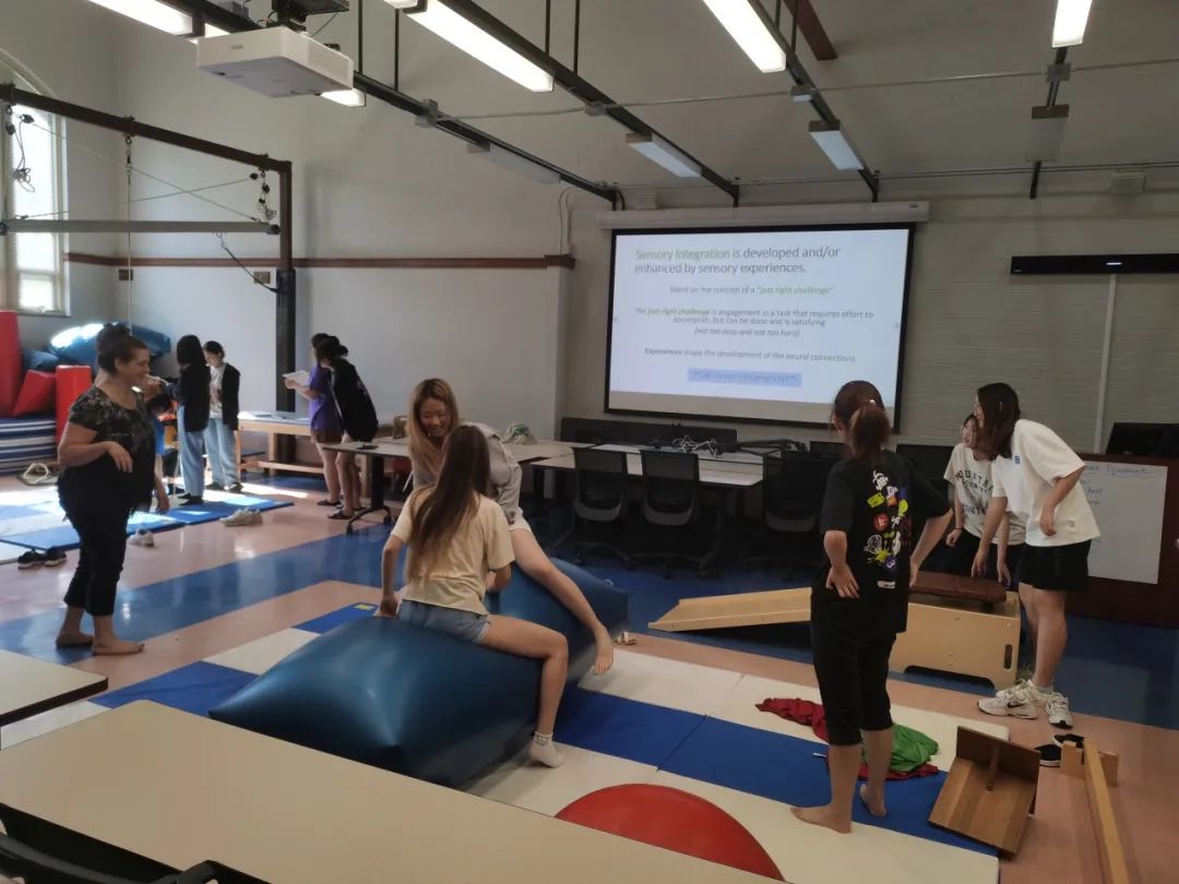 杜肯大学为了让同学们更好地践行“知行合一”的实践理念,为同学们安排了丰富多样的课程体验。例如:某节“Special topic in rehabilitation”课程中,老师先为我们讲解了作业治疗中常见的干预措施,然后通过让同学们亲身体会干预方法,以做到举一反三,明白每一种干预措施的核心理念。新奇独特的教学方式带给了同学们全新的课堂感受,牢牢吸引同学注意力的同时,潜移默化地帮助同学们将所学知识“外化于行”。