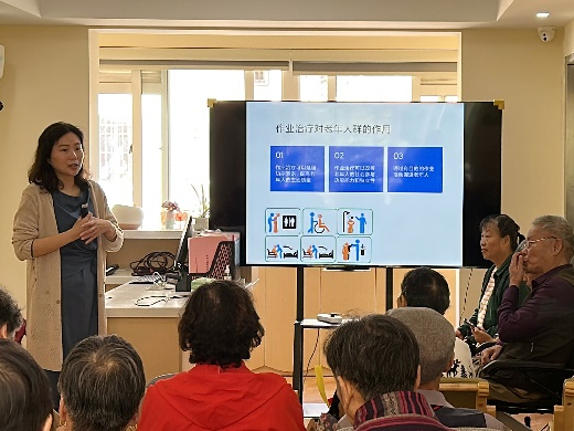 李晓林老师为大家介绍了作业以及作业治疗的概念。老年人在家庭中也扮演了生活角色,不同角色需要完成的活动和“功课”就是作业的意义,而作业治疗就是最大限度地恢复和提高每个人独立生活和劳动的能力,使其作为家庭和社会的一员过着有意义的生活。