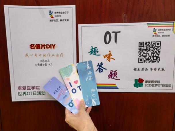 在进入社区服务社会的同时,伟德国际VICTOR1946联合作业治疗教研室也在校园中组织了OT游园会,通过OT趣味答题、明信片DIY形式向在校员工普及作业治疗的概念和世界OT日。