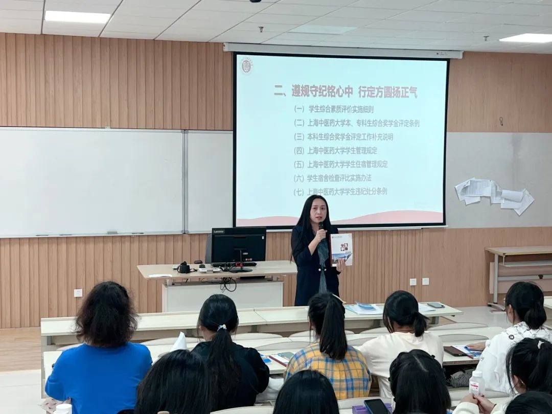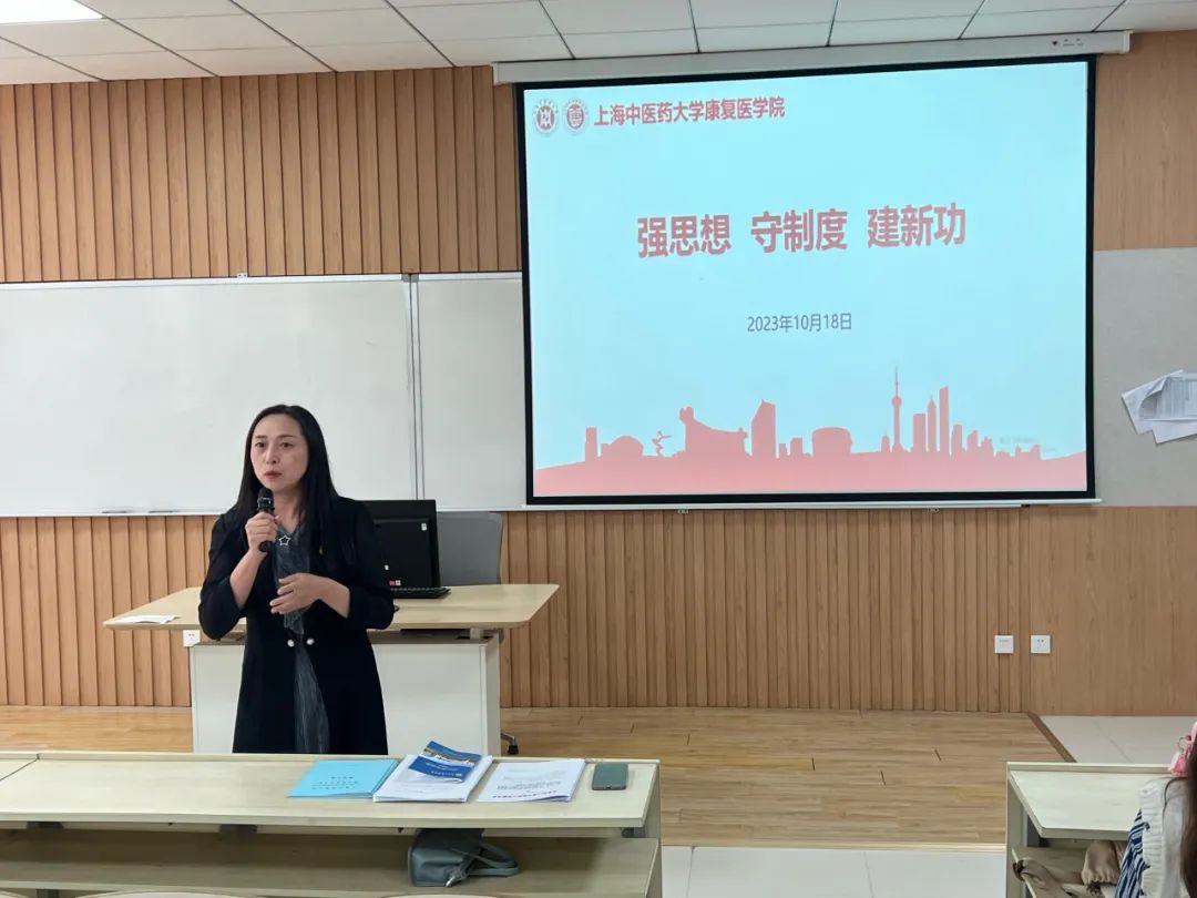 毕亚男带来题为“强思想 守制度 建新功”讲座,首先带领同学从“六个坚持”深刻领会习近平新时代中国特色社会主义思想的理论精髓,共同学习领会习近平总书记的“青年观”,鼓励大家努力成为有理想、敢担当、能吃苦、肯奋斗的可堪大用、能担重任的栋梁之材。此后,毕老师详细解读了校级院级员工管理相关规定,重点聚焦综合素质评价、奖学金评定、宿舍安全管理、考试纪律要求、违规违纪处分等重要注意事项。毕老师的讲解帮助新生们深化理论武装,筑牢思想基础,建立正确的行为规范,培养对规章制度的尊重和遵守,促使新生们努力成为德智体美劳全面发展的新时代康复创新人才。