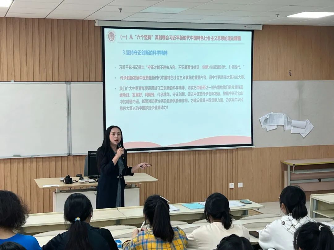 毕亚男带来题为“强思想 守制度 建新功”讲座,首先带领同学从“六个坚持”深刻领会习近平新时代中国特色社会主义思想的理论精髓,共同学习领会习近平总书记的“青年观”,鼓励大家努力成为有理想、敢担当、能吃苦、肯奋斗的可堪大用、能担重任的栋梁之材。此后,毕老师详细解读了校级院级员工管理相关规定,重点聚焦综合素质评价、奖学金评定、宿舍安全管理、考试纪律要求、违规违纪处分等重要注意事项。毕老师的讲解帮助新生们深化理论武装,筑牢思想基础,建立正确的行为规范,培养对规章制度的尊重和遵守,促使新生们努力成为德智体美劳全面发展的新时代康复创新人才。