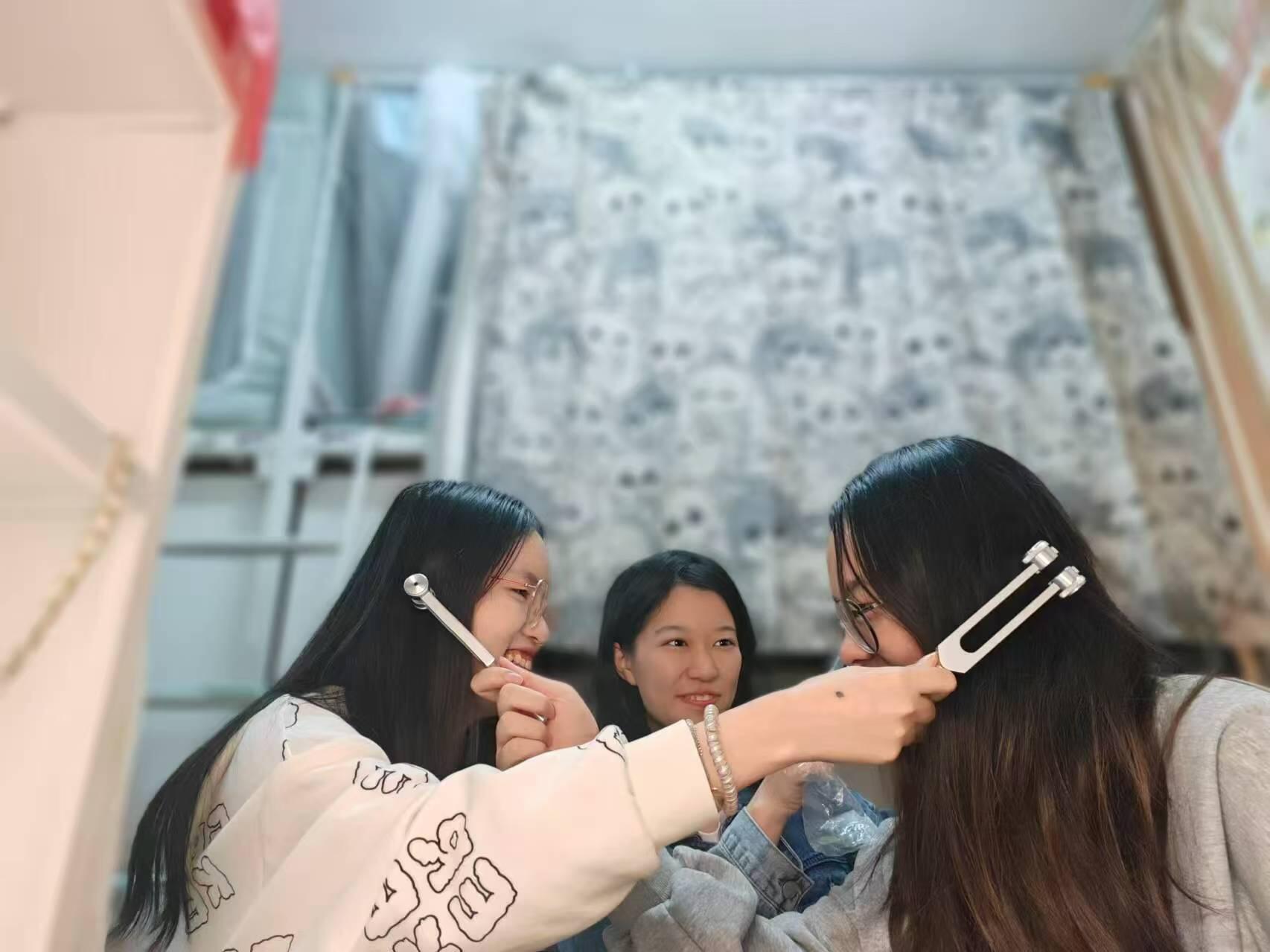 两位老师的精彩讲解和互动演示赢得了同学们的阵阵掌声和好评。讲座结束后,同学们纷纷回到宿舍开展实践体验活动。他们通过模仿、练习,进一步巩固所学知识,在实践中掌握叩诊锤和音叉的使用。这种理论与实践相结合的方式,不仅让同学们掌握专业知识,提高动手能力,更极大地激发了新生对专业学习的兴趣。