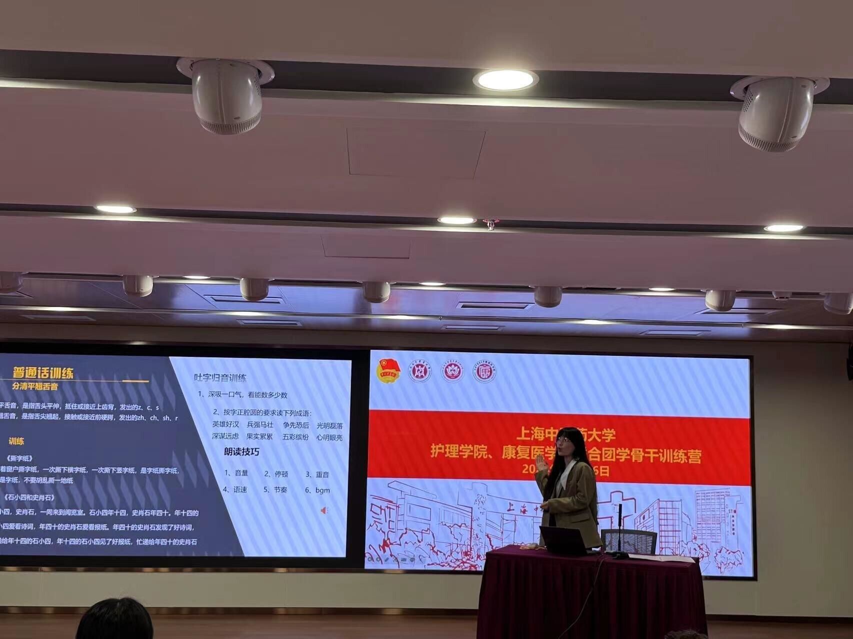 张欣悦同学作为护理公司20级护理本科班员工,现于本校护理公司就读硕士。她以演讲技巧的艺术与科学为题,带领训练营的同学学习演讲技巧。她强调演讲需要自信,接着通过绕口令与同学展开互动。同时,她也强调了在演讲中背景音乐的重要性,让同学们在轻松活跃的氛围中收获颇丰。