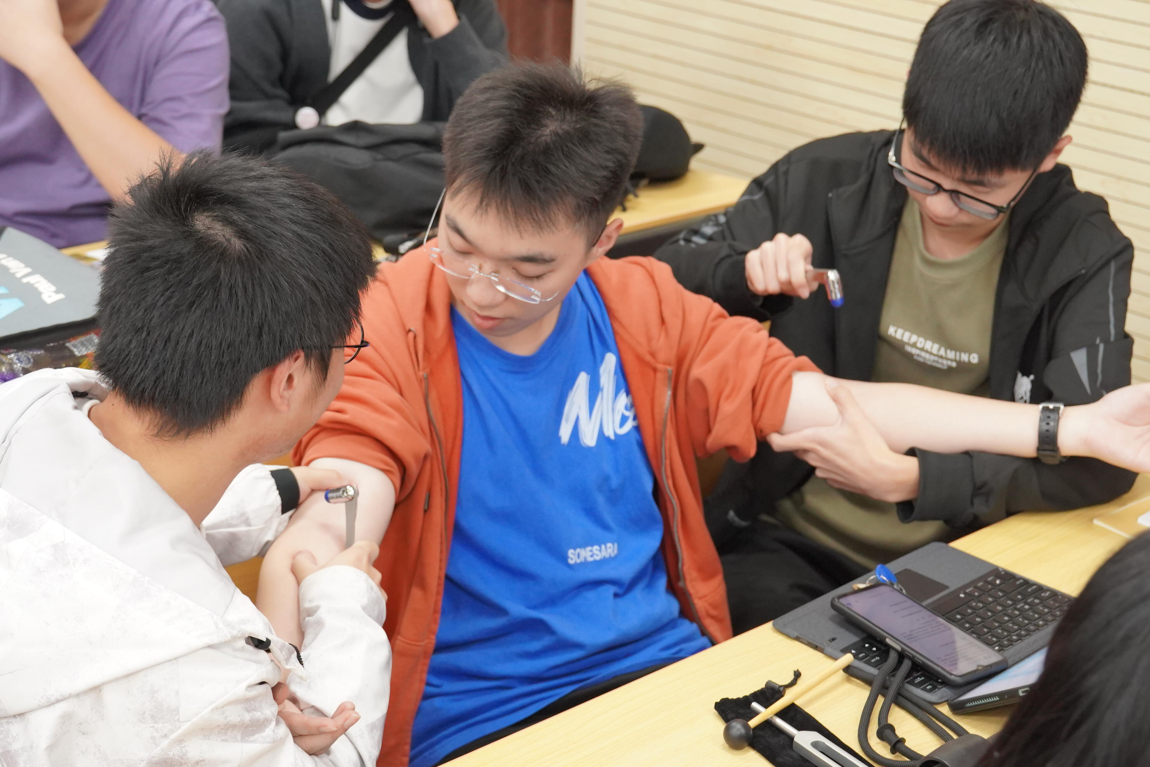 两位老师的精彩讲解和互动演示赢得了同学们的阵阵掌声和好评。讲座结束后,同学们纷纷回到宿舍开展实践体验活动。他们通过模仿、练习,进一步巩固所学知识,在实践中掌握叩诊锤和音叉的使用。这种理论与实践相结合的方式,不仅让同学们掌握专业知识,提高动手能力,更极大地激发了新生对专业学习的兴趣。