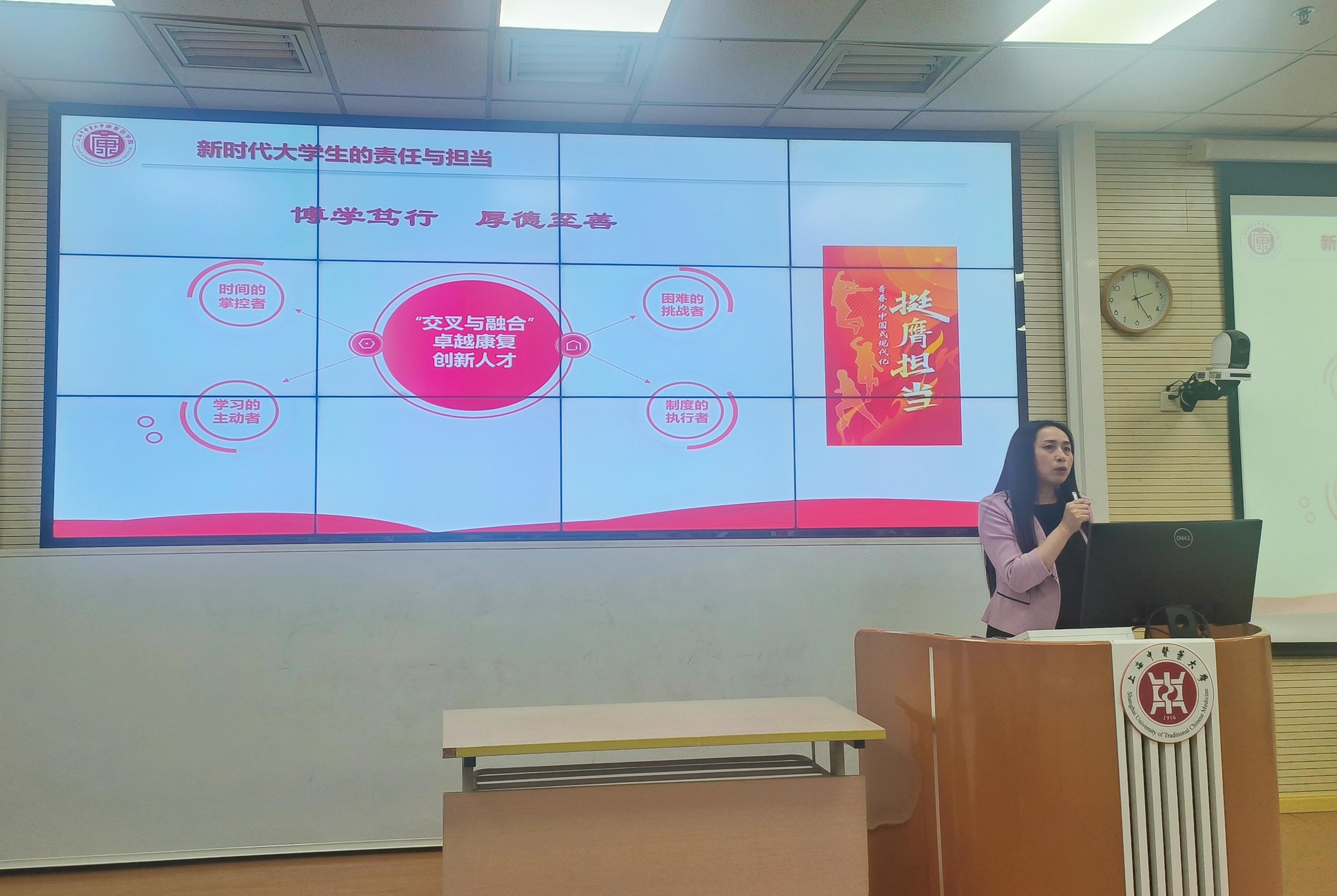 讲座伊始,毕老师带领同学们共同学习领悟习近平总书记青年观,“三有青年”“四点希望”“责任担当”为老员工成长成才确立了方向、明确了要求、指明了道路。毕老师也希望同学们在成长的道路上可以成为时间的掌控者、学习的主动者、困难的挑战者和制度的执行者,勇担新时代青年的责任与担当,努力向成为卓越康复创新人才迈进。