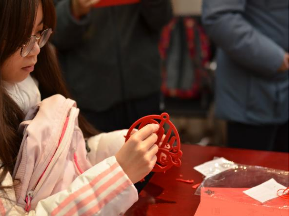 同学们满怀着对中华优秀传统文化的热爱,耐心学习剪纸和新春小物件的制作技巧。从纸张的折叠、剪裁,到粘贴、挂饰,每一步骤都极为讲究。将精心制作的小礼物送给身边的老师同学,每一份都饱含满满的祝福。