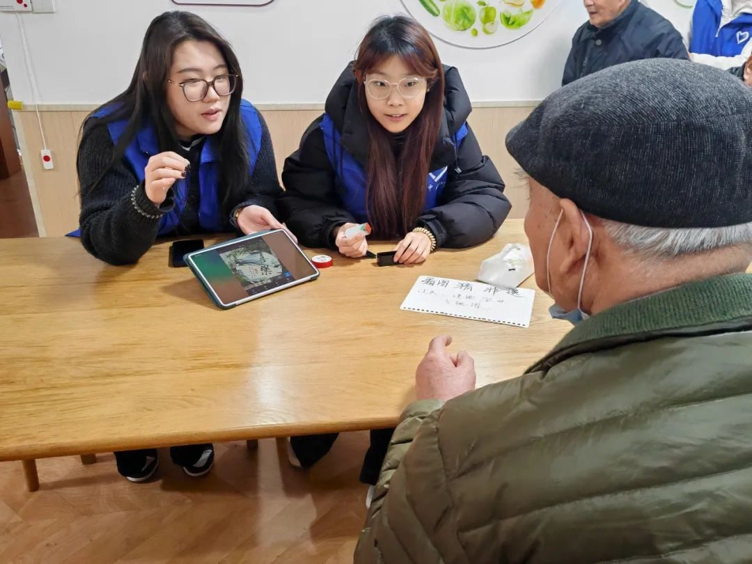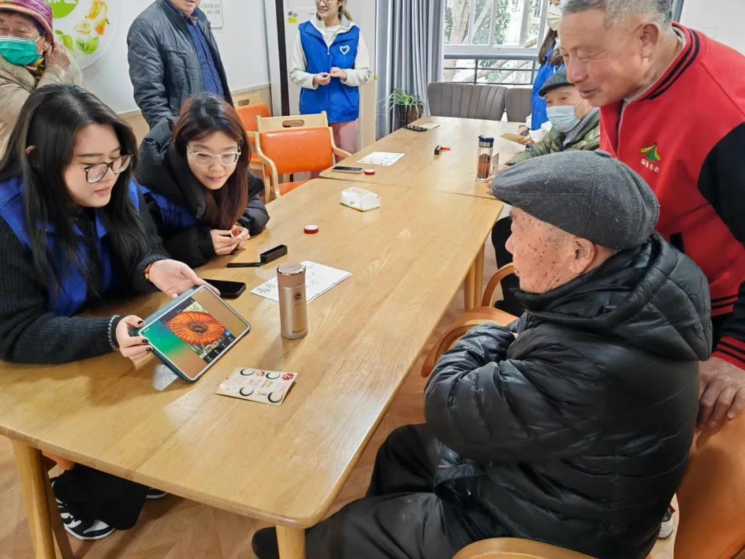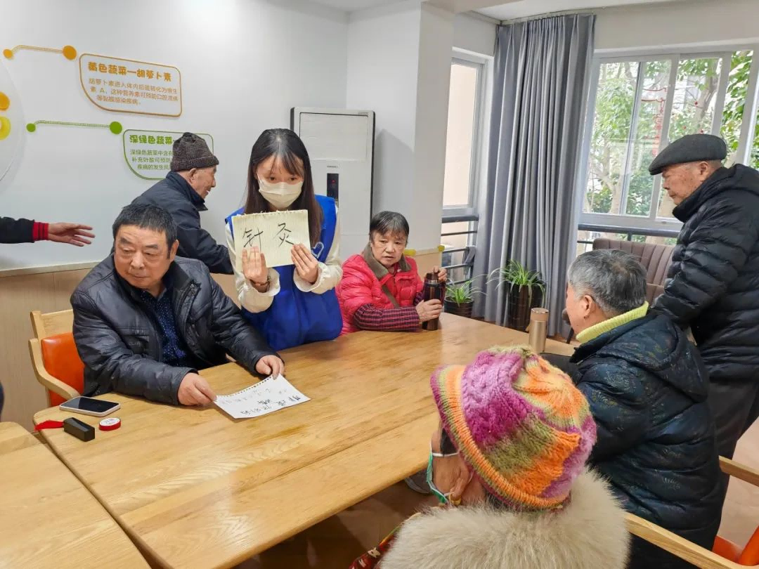 活动的四个摊位分别开展四项游戏:接力八段锦、非遗项目猜猜看、非遗版你划我猜、腰鼓逢7必过。在活动过程中,志愿者们通过分组引导老人们参与互动游戏,现场充满了欢声笑语。