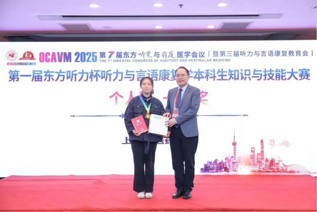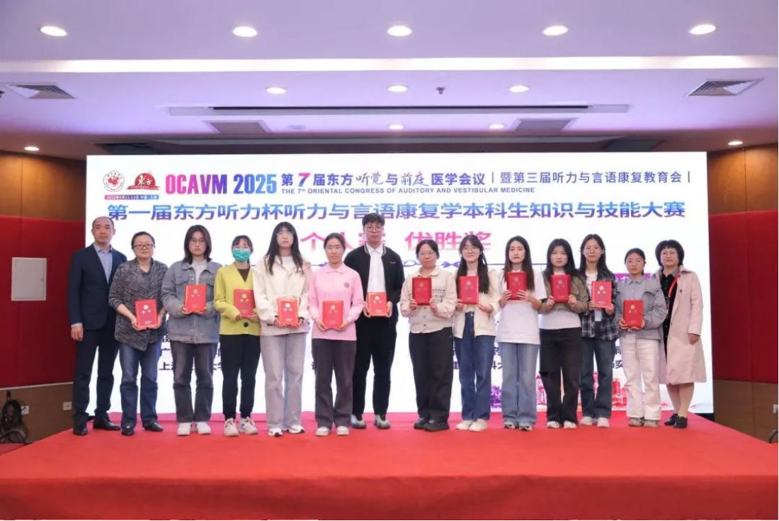 经过激烈角逐,最终获奖名单出炉:公司2023级听力与言语康复学裴佳宁同学荣获东方杯第一届听力与言语康复学知识与技能大赛个人赛一等奖,须思琪同学荣获个人赛优胜奖;2022级听力与言语康复学朱婉瑛,邵金慧,胡杨靖雪三位同学荣获团队赛三等奖;2021级听力与言语康复学蒋雨歆、熊卓嫣、夏轶君、丁丽云同学荣获听力言语与康复学本科生创新创业成果展最佳人气奖;伟德国际VICTOR1946凭借优秀的整体表现,荣膺最佳组织奖,彰显公司 “厚基础、强实践”的育人成效。
