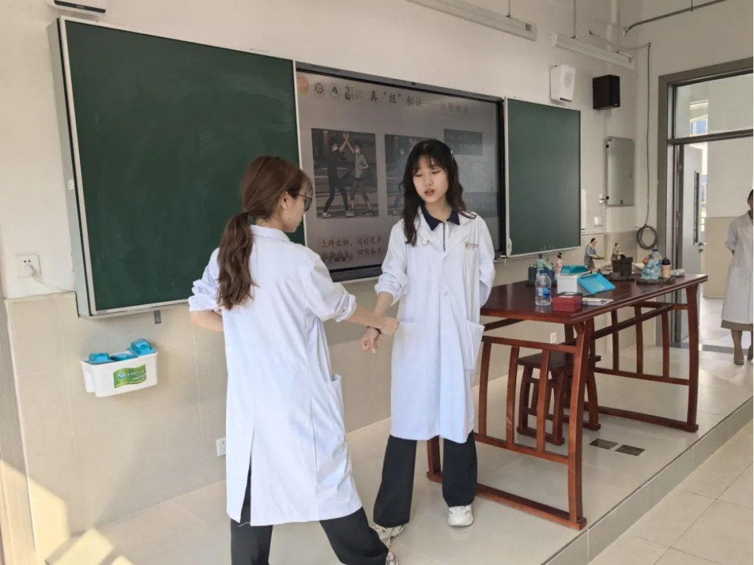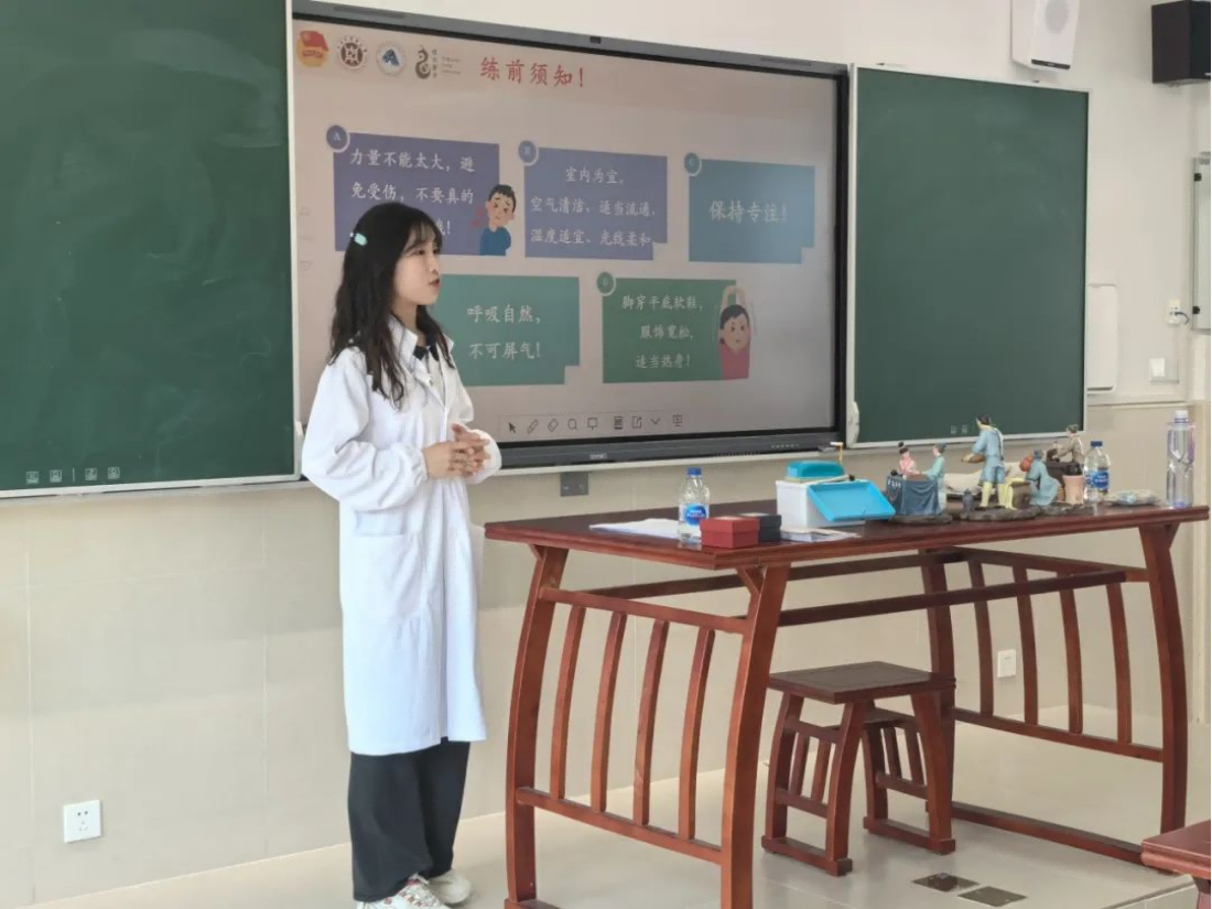 为了让同学们更深入理解“阴阳”这一抽象的中医概念,汤老师首先带领大家认识并辨别生活中的阴阳现象。通过列举白天与黑夜、热与冷、动与静等常见例子,同学们初步建立起了阴阳的概念。随后,汤老师详细介绍了多种调和阴阳的方法,涵盖中药调理、传统功法、针刺、艾灸等。她特别强调,本次活动将重点聚焦于简便易行的功法教学,尤其是双人协作练习功法,对于调和彼此阴阳、促进身心和谐具有独特效果,这一介绍让同学们充满期待。