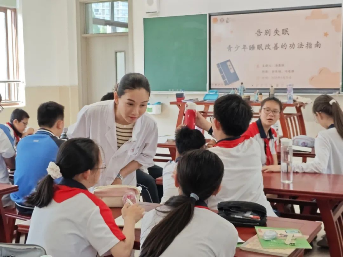 “同学们,大家平时都几点入睡呀?”课堂伊始,汤老师一句亲切的询问,迅速拉近了与同学们的距离,也引发了大家的热烈讨论,便纷纷举手,七嘴八舌地分享起自己的“睡眠故事”。“老师,我经常躺下半小时了脑子里还在‘放电影’,怎么也静不下来!”“我也是!明明很困了,眼睛就是合不上,翻来覆去到很晚…”