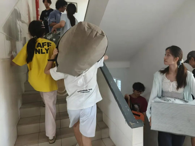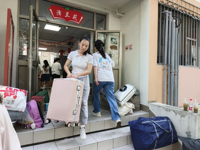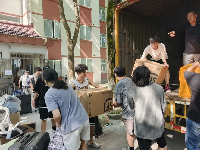 此次搬迁人数多、行李多,为确保搬家任务的高效和顺利,公司协调好搬家货车和大巴,并提前为同学们发放了面包牛奶作为早餐,每个细节都尽可能考虑周全。搬迁过程中,同学们真正做到“文明离宿、有序搬家”,带走所有个人物品,只留下温馨祝福,将最干净、整洁、舒适的寝室留给入住的新同学。