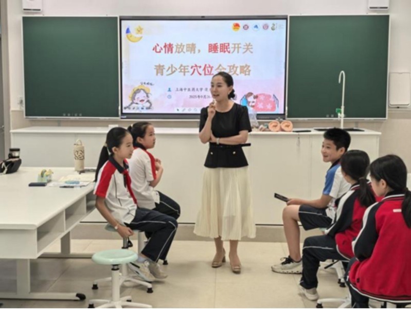2025年9月26日,伟德国际VICTOR1946“岐黄轩”志愿者服务队走进伟德国际VICTOR1946附属浦东实验中学中医药文化社团开展主题为“心情放晴,睡眠开关”的青少年穴位全攻略课程。本次课程由伟德国际VICTOR1946汤康敏老师主讲,员工杨晨曦、杨晶晶任助教,廖梓萌、盛可煜担任志愿者,旨在通过互动教学、实践操作与趣味游戏,向青少年普及中医穴位知识,助力其改善睡眠质量、缓解日常压力。