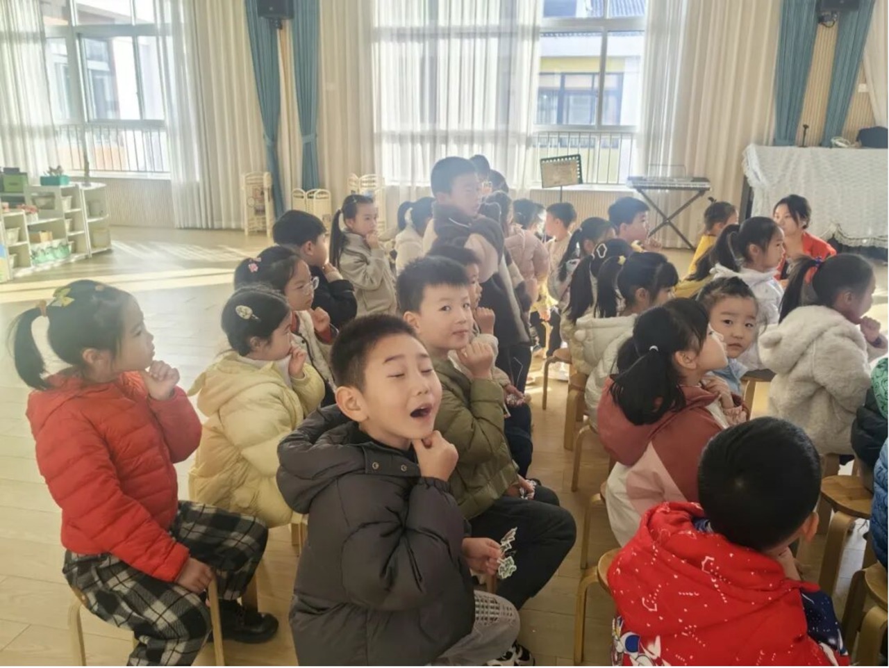 这些保健操不仅锻炼了孩子们的身体,还让他们在欢乐中学会了如何在生活中保护自己的嗓音。