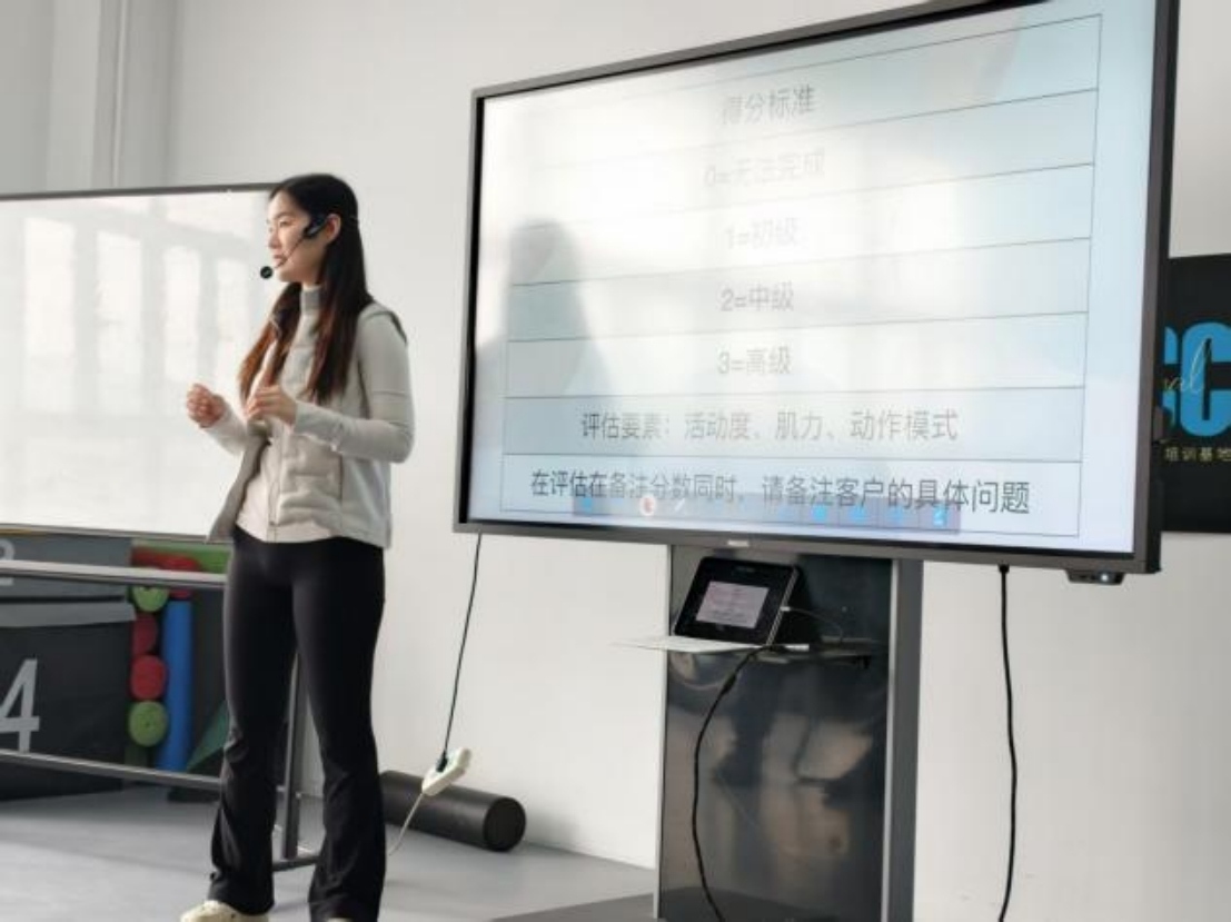 随后,孙老师围绕体适能评估核心要素,详细讲解了活动度、肌力、动作模式三大维度的评估逻辑和评分标准,为后续实践操作奠定了基础。