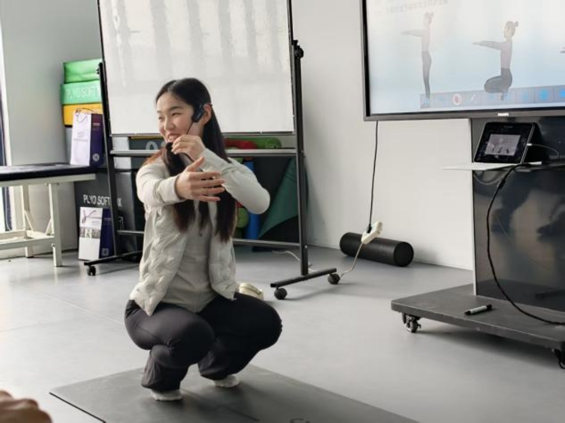 在坐姿腿外展动作评估中,孙老师结合同学们的体验感受分析动作表现,并特别指出该动作对女生较为友好,男生在完成过程中普遍面临挑战,让同学们对不同性别身体机能差异有了更直观的认知。