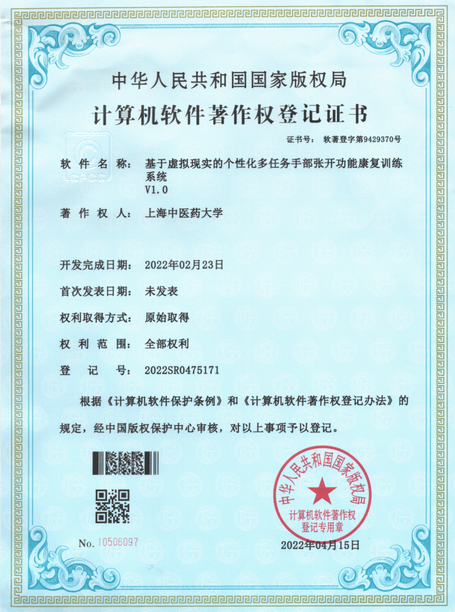 目前该神经调控设备与手机应用程序已经申请国家发明专利2项(专利号20220626746.8和202210656089.1),获得1项软件著作权授权(2022SR1254011)。